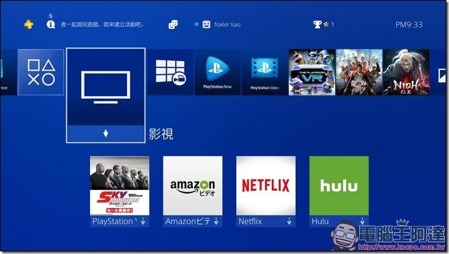 要使用這個功能的話,首先你要先申請一個日本的 PSN 帳號,然後在你的 PS4 主機上登入這個日本的 PSN 帳號,登入之後,就選擇功能表上「影視」的選項,接著從裡面直接找到 DMM 的程式來進行下載。