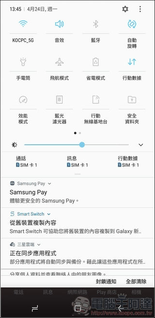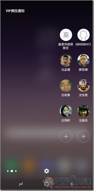 由於 S8+ 搭載了曲面螢幕,所以之前 edge 系列流傳下來的「曲面側螢幕面板」功能依然健在,只要將手指由畫面最右側的側螢幕面板往左拉即可呼叫出來使用: