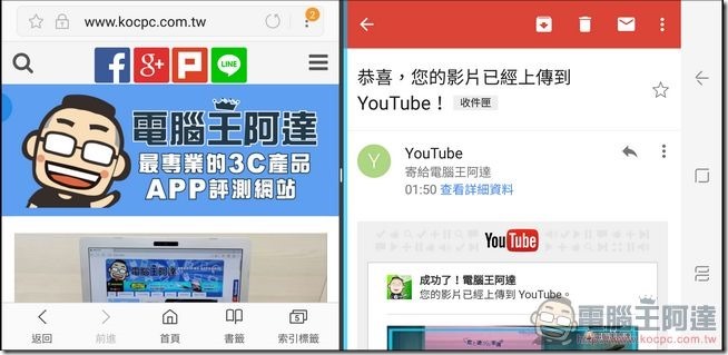 而三星獨創的分割畫面,現在 Android 7.0 原生系統裡面也有做此功能,可以在同一個畫面同時運行兩個App: