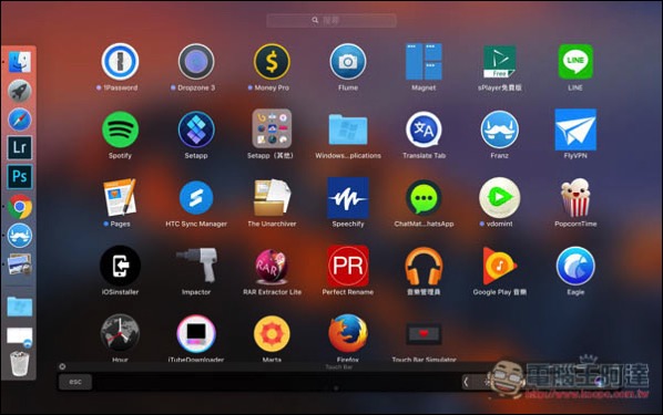 即使在 Launchpad 底下,Touch Bar 依舊顯示在最上方。