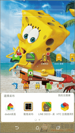 套用所選擇的主題之後,可以看到由桌布、小工具、程式集裡面的圖示、甚至連音效都全面性的不同了!不管在視覺、聽覺與使用體驗上都完全不一樣,簡直有換了新手機的錯覺: