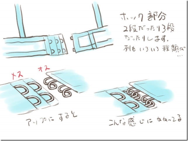 ↑首先了解內衣的構造,左邊是環狀的勾扣部分,一般都有二到三層可以選擇,而右邊則是倒鉤的鉤子,扣在勾扣上來固定內衣。圖片來源:netatama