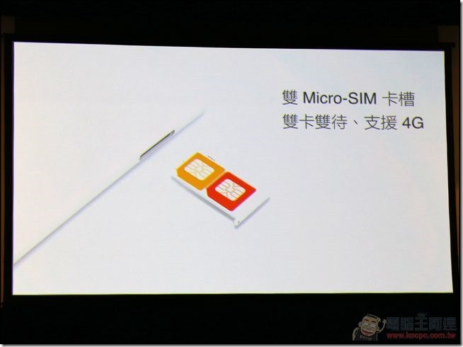 SIM卡槽:雙Micro-SIM卡槽皆支援2G/3G/4G,雙卡雙待