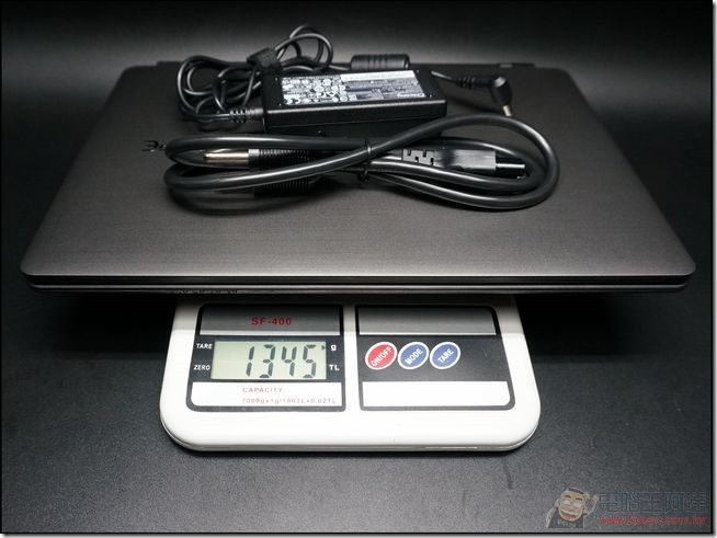 把變壓器與充電線一起算進去總重也才 1345 公克: