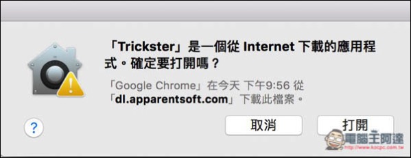 Trickster 因為是從網路上下載的工具,因此首次開啟會跳出訊息視窗,按打開即可。