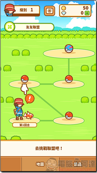 至於挑戰聯盟的方法其實超級簡單,你完全不用動手,唯一要做的就是好好培育你的鯉魚王,進入聯盟對戰後只要點擊按鍵就完全自動處理(反正就是跳一次比高度),你的目標就是征戰六大聯盟取得冠軍。