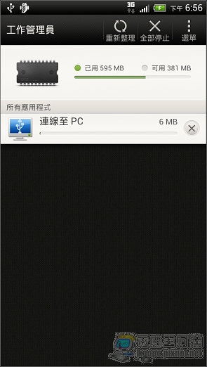 如果使用程式集中的「工作管理員」最多也不會清出超過400MB的剩餘記憶體,一般來說ONE X跑沒幾個記憶體就會剩下100出頭,不過並不會「頓」: