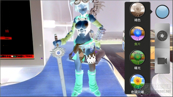 點擊右上角的藍色球體可啟動各種拍照特效,如景深、點點、與各種濾鏡: