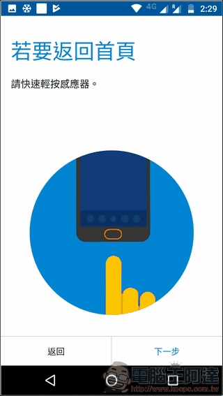 螢幕下方則配置了虛擬導航列與實體的指紋感應器,指紋感應器本身並不具備 HOME 鍵功能,但透過設定也可以將指紋感應器作為導航鍵使用: