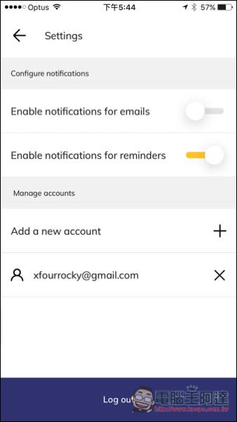 在這邊可以找到新增其他 Email 帳戶的功能(Add a new account),但要注意的是,每個 Email 服務僅能登入一個,沒辦法同時登入兩個 Gmail 帳號之類。