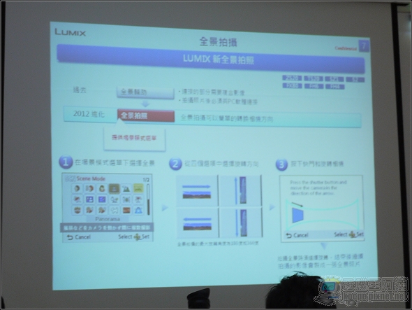 接下來的部分不是筆者受邀採訪的內容,但辦在同一場,由於我自己就是Panasonic GF2的愛好者(下一台應該還會是GF系列),順便報告一下,這次公開的是一般消費DC「LUMIX系列」(也就是我們俗稱的傻瓜相機),並在消費機種中加入了原本中高階DSLR才有的特效功能: