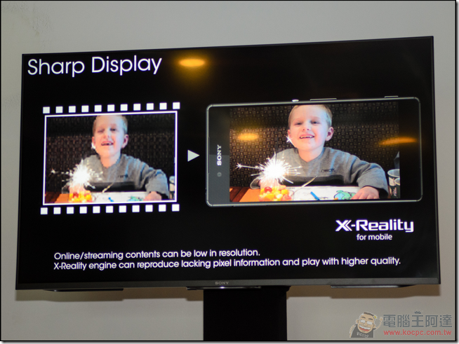 搭載Live Colour LED 與X-Reality for mobile極真顯示技術,強化直覺對比,當網路瀏覽影片傳輸速度受限不夠快的時候,影片顯示也能流暢不格狀: