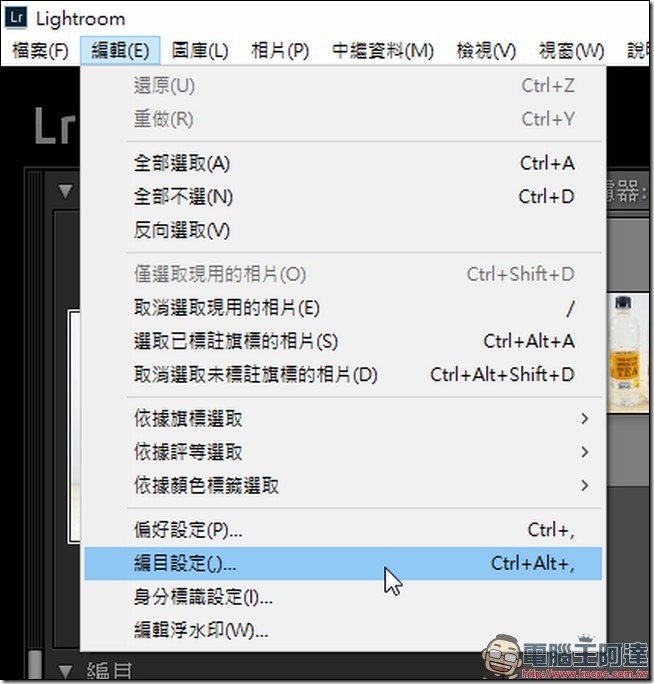 Step 01:首先打開你的 Lightroom,並且找到「編輯」內的「編目設定」,找到後點選他。