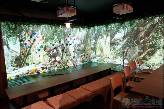 還有為小朋友設置的攀岩區,裡面則是有昆蟲捕捉互動遊戲: