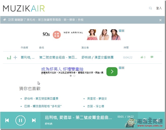 ↑要收藏特定曲目的話,必須要登入會員,懶得填寫的話就用臉書吧!快又方便。