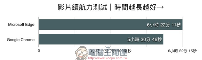 筆者一開始預估雙方會在五小時內分出勝負,沒想到 Edge 居然在 Chrome 方關機後還能繼續運作近 1 小時。用劇集來算就是多了對方約 1 集的播放時間。由於雙方均採用乾淨狀態,未裝任何外掛程式或擴充功能,因此 Edge 的表現固然出人意外,但 Chrome 的表現也確實不俗,如果要說 Chrome 越用越慢,對於擴充功能的選擇肯定也是關鍵之一。