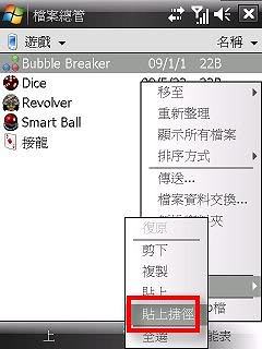 在PDA的軟體中絕大部分的軟體都是綠色軟體,也就是只要之前有安裝過,就算換機器或是更新韌體也不需要重新安裝,但如果不重新安裝的話在PDA的程式集裡面就不會顯示該軟體,如果要使用某一軟體的話就要用檔案總管進入該目錄執行有點麻煩,所以筆者在這邊教大家如何在程式集列表中加入綠色程式的執行捷徑,筆者以一套3D麻將遊戲為例: