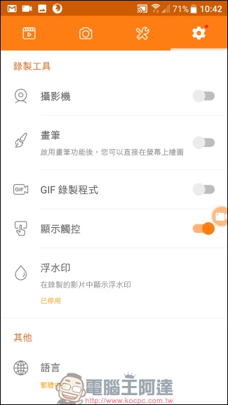 ▲舉例來說,錄製工具的「攝影機」預設是關閉,開啟後會啟用前鏡頭錄下使用者的表情,並且嵌入錄製中的螢幕。「顯示觸控」可以顯示出使用者觸控了螢幕上的什麼地方。這些功能可以讓單調的螢幕錄製看起來更有內容。