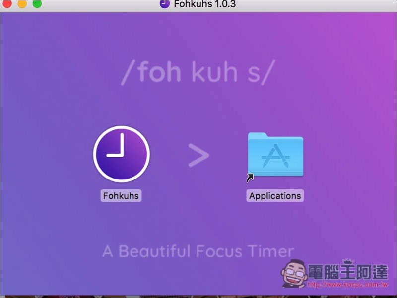 Fohkuhs 並沒有在 App Store 上架,需進到官網下載。下載完打開安裝檔後,把應用程式拖拉到資料夾就安裝完成了: