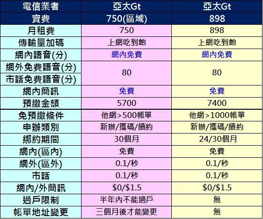 若是非常重視4G網速的人,版主非常推薦亞太750方案。只要月繳750,就可享有4G 898的資費優惠內容(網外80分鐘+網內免費)及4G吃到飽。雖然898的手機補貼佣金叫750高,但若以綁約期間平均費用來看,還是750比較划算。