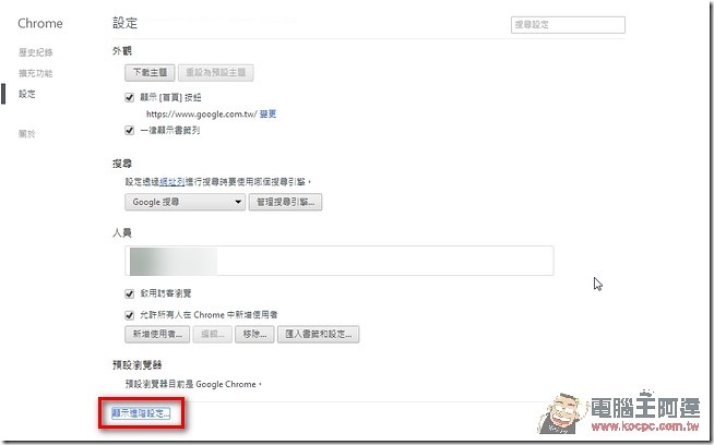 ↑保險起見,也把瀏覽器的cookies清除,以Chrome為例,是在設定中找尋「顯示進階設定」。