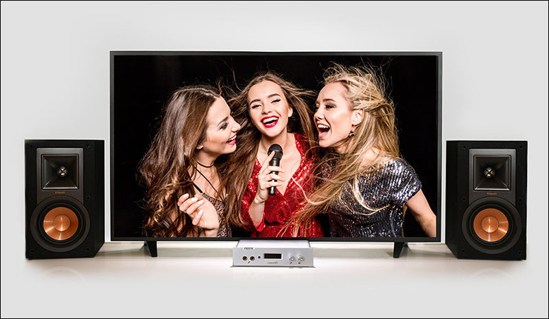 如果家裡已經有被動式喇叭呢?那更簡單,用 Speaker Out 接上就行,就算沒有音效或喇叭, FIESTA 的 HDMI 影音輸出功能可以把混音完的影音訊號輸出到電視機,用電視機內建的喇叭也可以唱歌!是不是超方便呢。