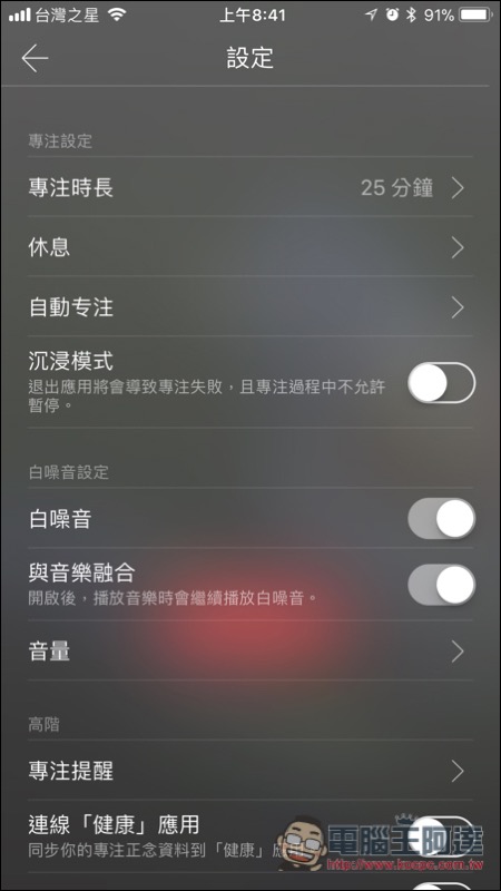 支援背景以及待機使用,也就是說當你按下專注開始播音樂後,跳到桌面或按下 Power 鍵進入待機模式一樣會繼續,因此通知功能我是建議開啟,這樣就不用跳回 App 裡查看: