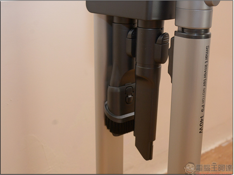 同樣的,在與吸頭連接的部分也同樣是易拆扣,依照清潔不同材質、位置單手就能更換,整個動作一氣呵成。