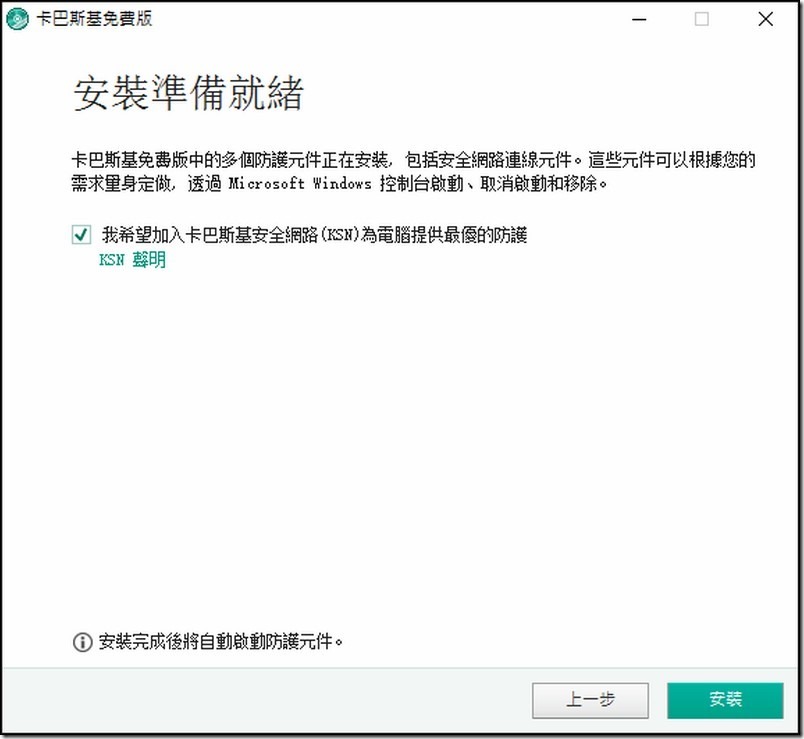 Step 04:接下來就是點選繼續與安裝,然後會進入到卡巴斯基的下載介面中。