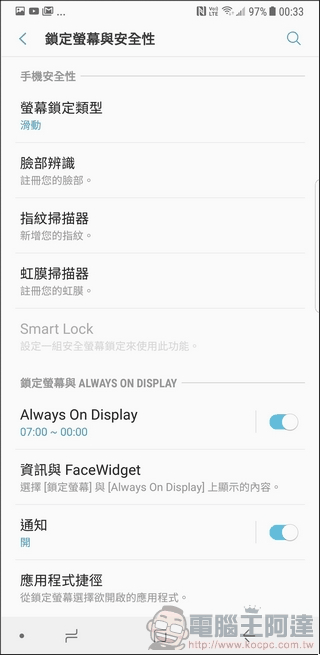 設定介面如下,當您拿到 Note8 的時候第一時間就會收到更新通知,建議立刻升級以確保良好的使用體驗,根據官方資訊 Note8 也會在近期更新到最新的 Android O(詳細期程以官方公告為準),接下來為大家介紹幾個比較重點的設定與功能: