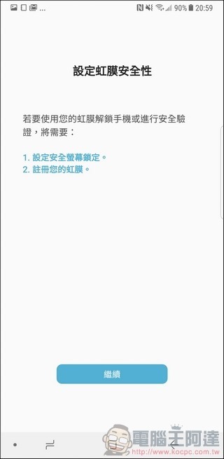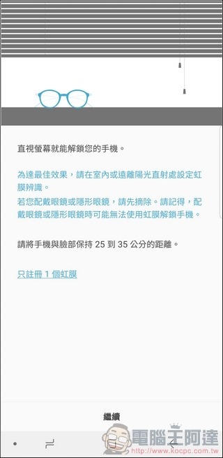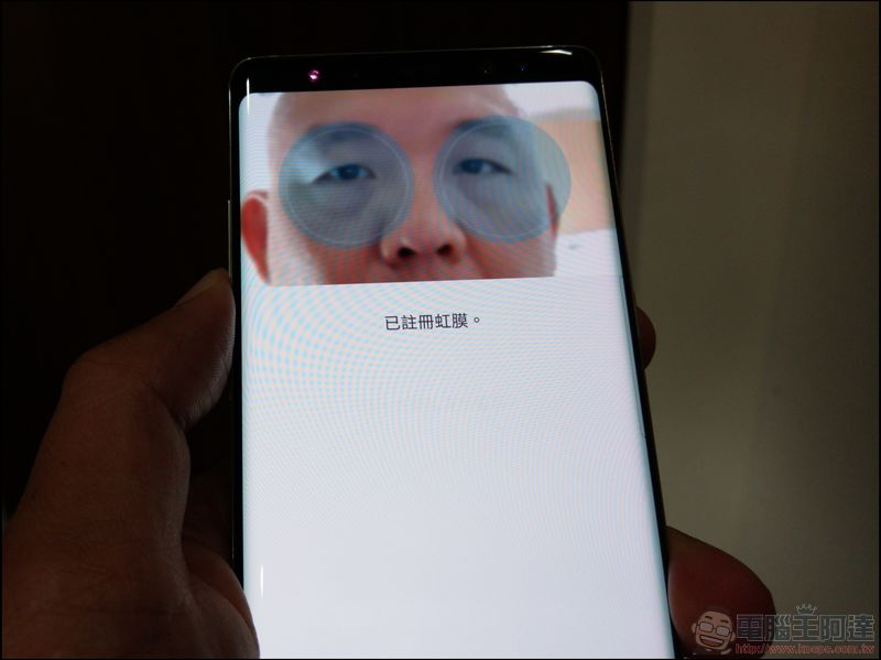 Note8 安全性部分延續 S8 系列的傳統,提供了各種選擇性,包括了臉部辨識、指紋辨識、與虹膜解鎖等選擇,由於牽扯到行動支付,所以系統安全性相當重要,再此為大家簡單介紹 S8 系列舊有的虹膜解鎖:
