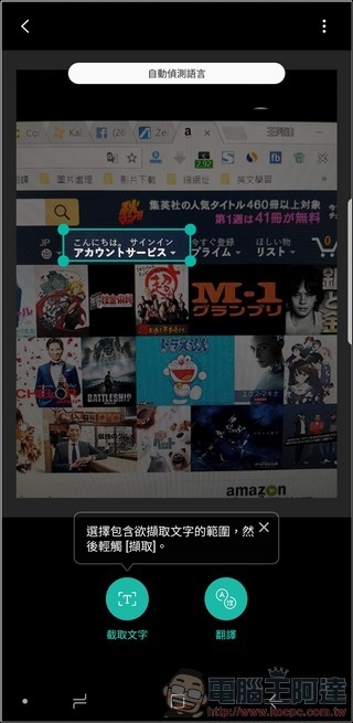 Bixby Vision 除了圖像判斷以外還可以進行文字翻譯,只要拍照後直接框選想翻譯的文字範圍即可,也可以由相機啟動該功能並搭配懸浮翻譯直接在相機介面翻譯外文: