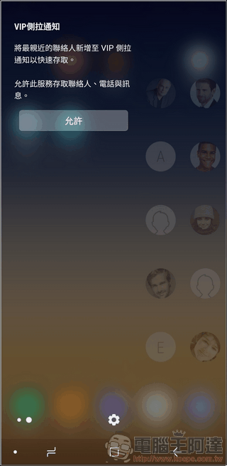 接下來介紹一下由 S 系列延伸到 Note 上面的曲面側螢幕面板吧,他平時隱身在螢幕側邊,當你需要時只要輕輕一撥就可呼叫出 VIP 或常用程式,而且也可透過內建的市集下載其他功能的面板:
