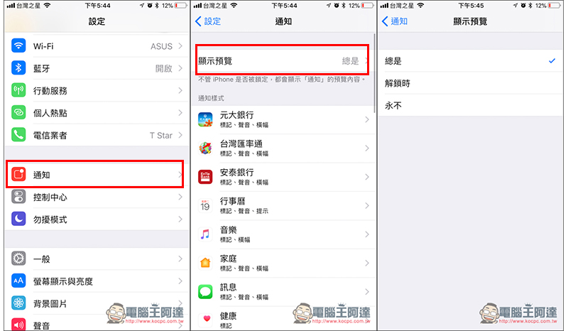 進到設定中的通知 -> 顯示預覽 -> 更改成解鎖時:
