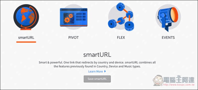 smartURL 比較適合企業用戶使用,因為它的功能可說非常強大,除了基本的分析功能與辨識來源裝置,還能針對不同的國家或裝置設定其他專屬網址,也就是說假設你的網站有多國語言,但網址不同,這時你就能針對美國之類的國家,會轉到另一個網站,其他國家則轉到預設的網址,都是共用同一個 smartURL 轉址。而裝置部分當然也是一樣,桌機筆電是轉 xxx 網址,但行動裝置變成轉到 ooo 網址。