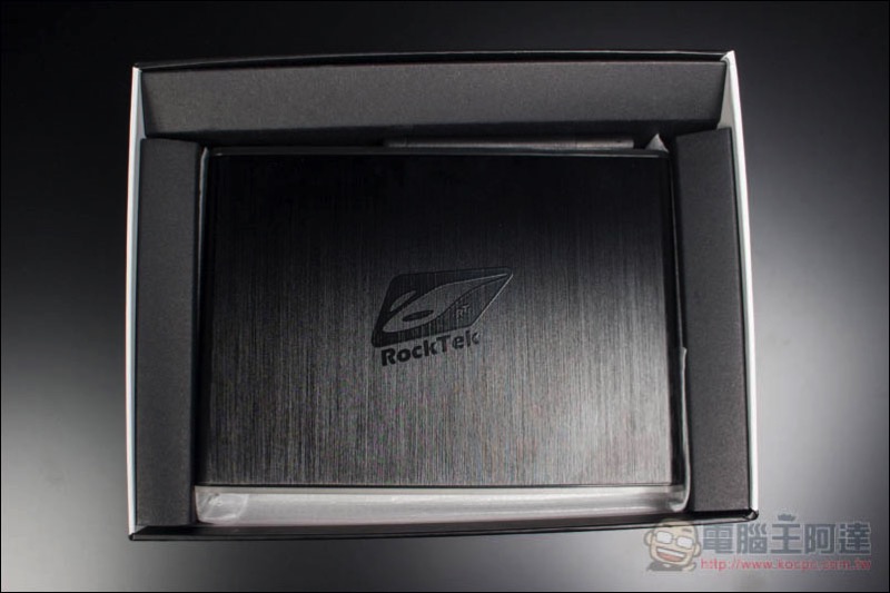 打開後就可以看到 RockTek X5 的本體,不得不說我第一眼看到時,真的有被這高質感驚艷到,而且又是我最愛的髮絲紋設計:
