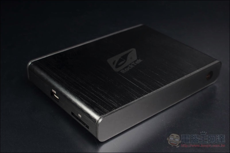 RockTek X5 外包盒設計相當特別,除了產品以及品牌名稱外,表面還印上這台的重點硬體規格與支援性,比較值得注意的是支援 4K 60fps 超高畫質播放、HDR、H.265 編碼格式、藍牙 4.2、以及 Gigabit Ethernet LAN + WiFi 2.4G/5G: