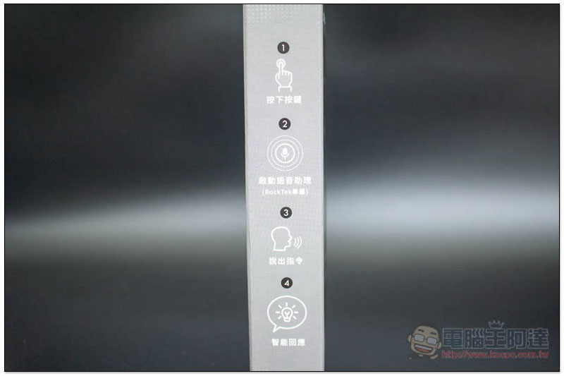 側邊有印上它的主要特色,簡單來說就是按下遙控器上的專屬語音控制按鍵後,說出指令,它就會自動幫你處理,你完全不需要手動操作: