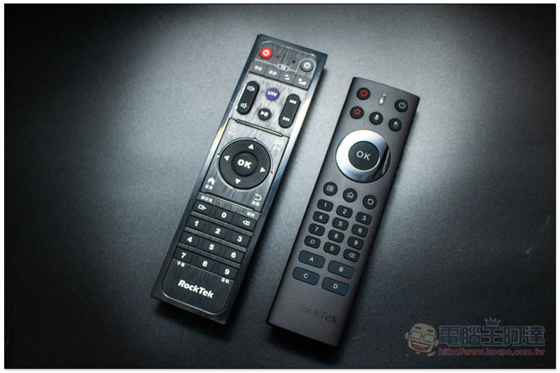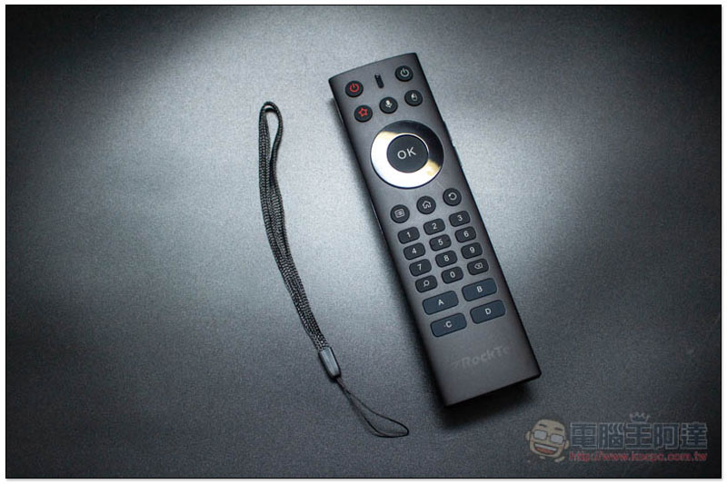 雖然市面上已經有不少電視盒支援中文語音操作,但真正由官方且是台灣廠商推出的,就只有 RockTek 雷爵科技這個品牌,其餘都是來自中國大陸,且是透過第三方賣家帶進來。下方就是全新的 RC01V 智慧語音遙控器,相較於舊版不僅體積更小,也更有設計感: