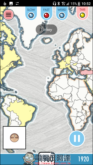 ▲曲風有「Fast」、「Slow」、「Weird」三種,年代則在底下,以十年為間隔。選擇地區則必須在手繪風格的地圖上找出位置,而在Radiooooo 中,台灣跟中國是分別屬於不同地區。