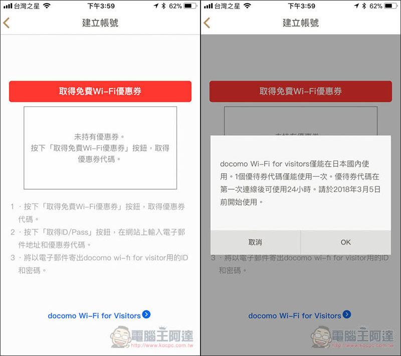 更貼心的是,NTT DOCOMO 還提供免費 WIFI 優惠劵,去日本沒網路時就能用它來暫時撐一下: