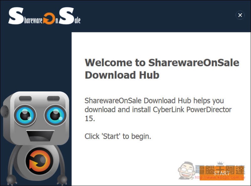 跟其他限免活動不同是,這套需透過 SharewareOnSale 自家工具來下載(其他很多都是直接下載),按右下角 START 開始: