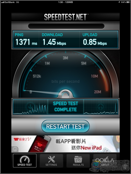 飯店:new iPad當熱點時下載雖然一樣慢,但上傳卻莫名比較快,測了好幾次結果都一樣,原因不明。