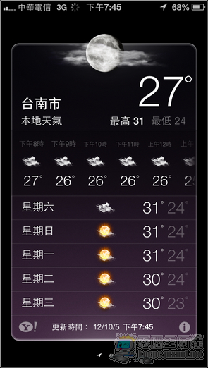 其實介紹iPhone5就等於是介紹iOS6,iPhone5出場就是原生的iOS6.0,但由於螢幕長度比較長(960–>1136)的緣故,所以APP列數由四排變成了五排(以下是初始畫面),介面上與傳統的iOS OS差別不大,但拿掉了地圖(Google Maps)與Youtube(可自行安裝),筆者不就iOS6多做介紹,有興趣的朋友可參閱我與小米寫的iOS6新書(請點我):