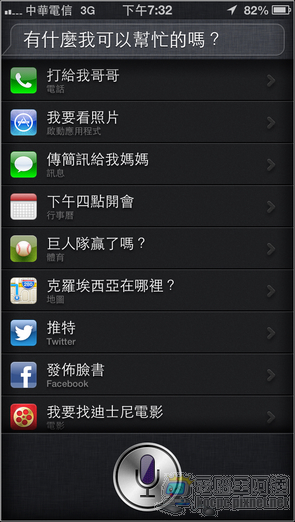 Siri部分主要就是支援了中文,您可直接對他下達命令,如請他記錄行事曆、打電話給誰…: