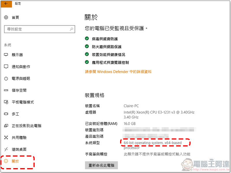 ※我的 Windows 是幾位元從哪看?