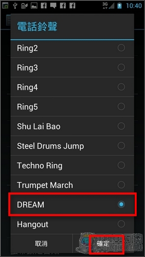 最後選擇剛剛製作的鈴聲檔後確定就完成了,簡單吧: