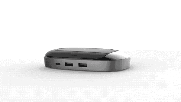 而來到 2018 年後,他們再次推出革命性產品 合了 Qi 無線充電功能 的 USB-C Hub。這款轉接器造型跟上一代完全不同,變成有尾把的款式,且形狀採用圓型,當然,這都是為了實現無線充電技術的關係: