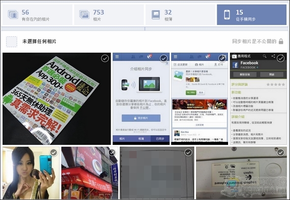 在這邊就可以看到手機中所有照片與圖片都上傳到FACEBOOK裡面了: