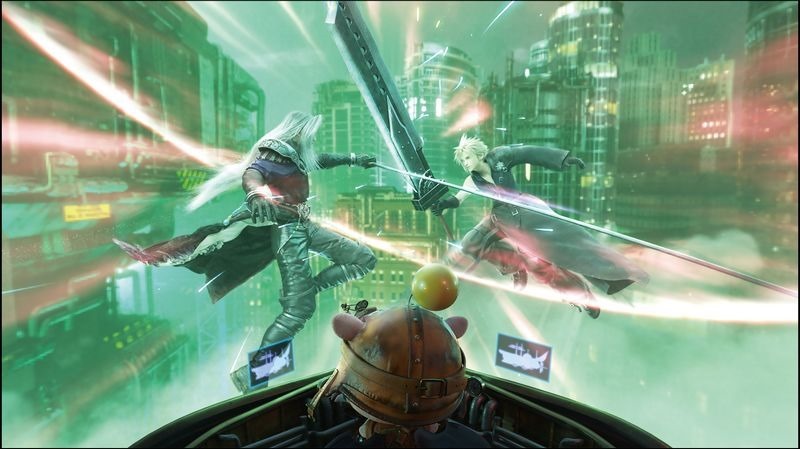 中途還會遇到 FF7 中賽菲羅斯與克勞德的宿命之戰(也就是 Final Fantasy VII Advent Children 中的最後決戰片段 3D化),非常過癮: